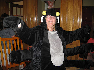 then headed over to my friends, Ann and Glenn's for their wonderful Halloween party. It was alot of fun, but it scared the bejeebers out of my grandkids. Ann and Glenn decorate their whole house for Halloween like some people do for Christmas. Halloween has always been Ann's favorite holiday and she does it up right every year. Her party's are family oriented and I just knew my grandkids would have fun but...some of the decorations were a little too much for them. They liked the food and the candy but left fairly quickly after they ate. They didn't stick around for the games. My son said that Alayna didn't want to go into her room alone when she got home. So, she ended up sleeping in Brandon's room with him! Oh, I felt bad as I just knew they would have so much fun.
