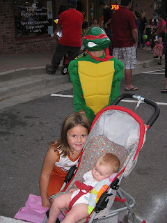 The Ninja turtle is my oldest grandson, the cheerleader is my oldest granddaughter and the baby is my yougest granddaughter. This was fun!